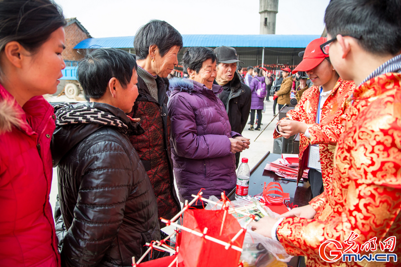 演出结束后,大学生志愿者们还准备了猜灯谜、送元宵、制作剪纸、教授咏春拳、送“福”字、送花灯等互动活动,村民们则教大学生们玩起了腰鼓。