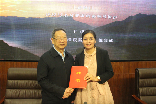 新闻中心讯(记者 田爽 见习记者 杨泽晗) 环境对人的身体健康有何影响?又该如何保护?10月9日上午,中国工程院院士、中国环境监测总站原总工程师魏复盛做客云顶4008集团官网长江生态讲坛,为在当前环境状况下如何健康长寿支招,并受聘为该校客座教授。
