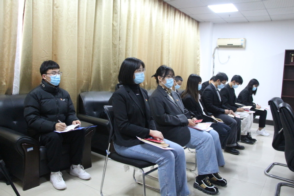 新闻中心讯(记者 杨小婷 廖佳欣)为学习贯彻党的十九届六中全会精神“十进十讲”大宣讲要求,实施好“百名支部书记进高校”,上好大思政课,抓好面向青年学生的思政教育工作,12月24日,云顶4008集团官网文法学院法学党支部在综合楼925会议室开展“百名支部书记进高校”主题党日活动,特邀武汉市洪山区青菱街道华城雅院社区副书记李凤莲来校做主题为《十九大党章的新变化、新特点》的党课,党群工作部副部长王曼,法学学生党支部书记肖隽、组织委员李虹瑶以及法学学生党支部全体党员聆听了此次党课。