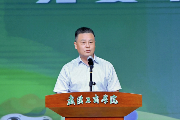 刘生元书记代表学校致辞,他介绍,学校深入学习贯彻习近平生态文明思想,将生态文明理念贯穿育人全过程,通过激发产教融合动能、激活科技创新密码、激励学生行为养成等举措,着力培养建设美丽中国的应用型人才,并表示,学校将进一步加强与武汉市生态环保行业企业的交流合作,推动环保产业新技术、新知识进课堂、进教材、进讲坛、进实验室、进创新创业项目,积极开展生态环保各类实践活动,为美丽武汉、美丽湖北建设提供人才、智力支撑。