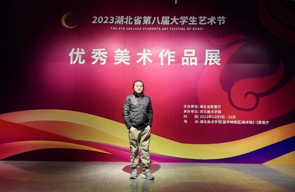 图为何轩在湖北省大学生艺术节优秀美术作品展现场