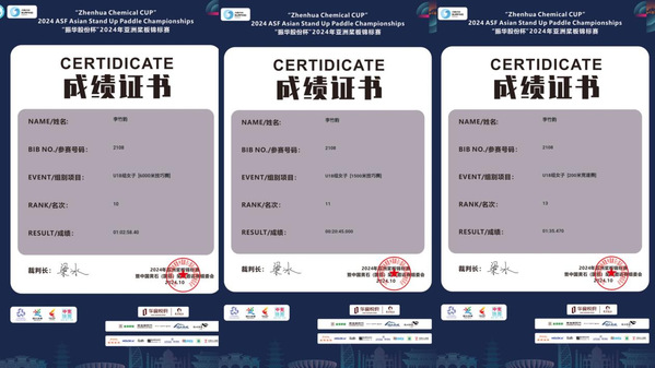 此前,李竹韵还获得2021年全国桨板锦标赛500米技巧赛、3000米长距离赛总积分第3名。