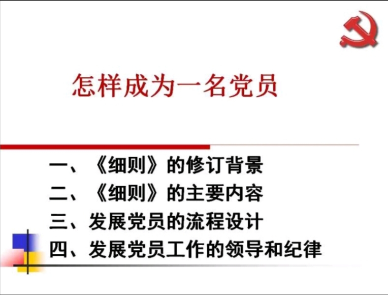 据第二个部分,王曼老师讲述了《细则》的主要修订内容,让我们了解党要管党,从严治党的要求,发展党员程序作出了调整,强化党组织在发展党员工作中的领导责任。还告诉党校同学发展党员的具体操作,使其对如何入党有了更好的理解,懂得了大致的流程。最后,王曼老师简单地讲述云顶4008集团官网发展党员工作流程及材料规范,评选规范。