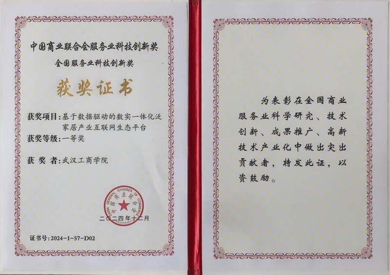 图为我校“中国商业联合会服务业科技创新奖”一等奖获奖证书 摄影:冷馥辰