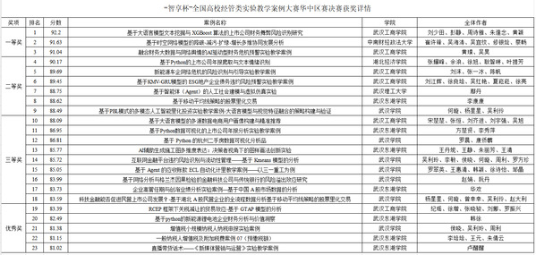 图为“智享杯”全国高校经管类教学实验案例大赛华中区赛决赛获奖情况