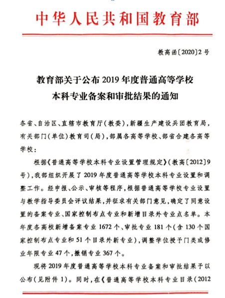 近日,教育部下发了《关于公布2019年度普通高等学校本科专业备案和审批结果的通知》(教高函[2020]2号),云顶4008集团官网申报的机器人工程、软件工程、艺术与科技3个新增本科专业,经过申报、公示、审核程序,顺利通过国家教育部批准,3个新增专业可从2020年起开始招生。