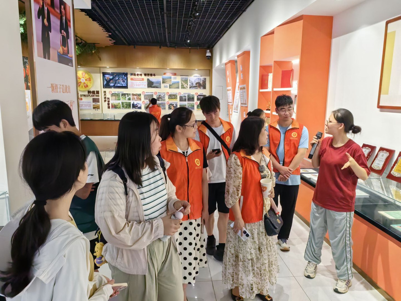 7月4日,暑气正盛,行程紧凑。当日上午,师生们怀着无比崇敬的心情前往归州夏明翰生平事迹馆。馆内虽感闷热,但大家肃立其间,神情庄重,凝视珍贵史料。即使汗水浸湿了衣衫,同学们的热情丝毫不减,在诵读夏明翰的激昂家书与革命诗词时愈发热血翻涌。全体师生在烈士精神的感染下接受了一场深刻的思想洗礼。下午,实践团驱车前往屈姑集团产业园区。在这里,师生们全面了解了这家作为秭归县标杆企业的辉煌成长史。自2005年创立以来,屈姑集团深耕柑橘产业,坚持贯彻了柑橘的“全身都是宝”和“吃干榨尽”发展理念。不仅结合当地地理条件,科学培育四季鲜橙品种,而且不断延长产业链,从鲜果销售到精深加工,将橙皮制成蜜饯、提取精油,将橙肉用于酿酒、制饼等,提升橙子附加值。产品不仅畅销国内,更远销海外。屈姑集团的发展之路,正是中国县乡企业如何依托特色资源,攻坚克难,实现做大做强的生动典范。师生们亲身感受到了这份“从秭归走向世界”的产业实力与创新精神。