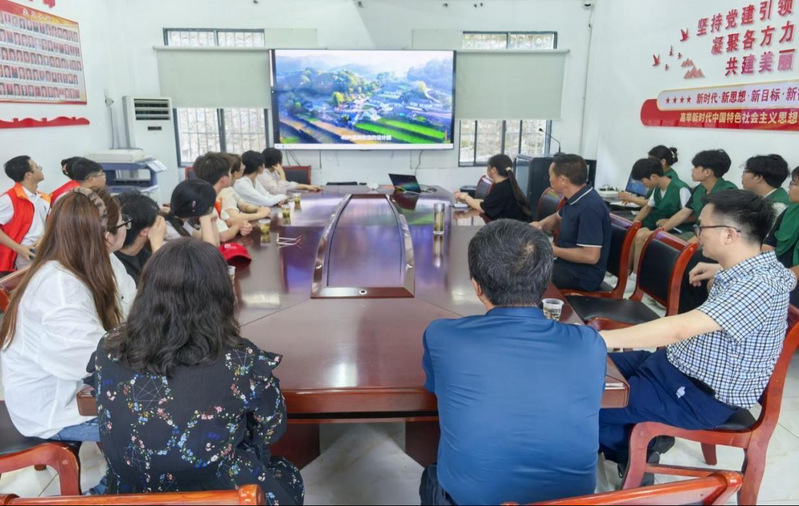 7月2日上午,实践团队从学校出发奔赴秭归。抵达首日,烈日当空,实践团师生马不停蹄地来到实践首站——秭归县穿心店村。热浪蒸腾中,他们立刻投入调研,深入走访村巷民户,与村民面对面亲切交流,了解村情村貌以及当地农户的日常生活。随后师生们深入田间地头,实地参观了村内的蜜桃种植林,直观感受当地特色农业产业发展情况。结合前期调研,团队一行在村委会与村主要干部进行了热烈深入的座谈,座谈会聚焦短视频时代背景下,如何利用互联网流量为村集体经济赋能。现场气氛活跃,学生们结合专业知识积极为村庄发展建言献策,思想的火花在炎热的会议室里碰撞。