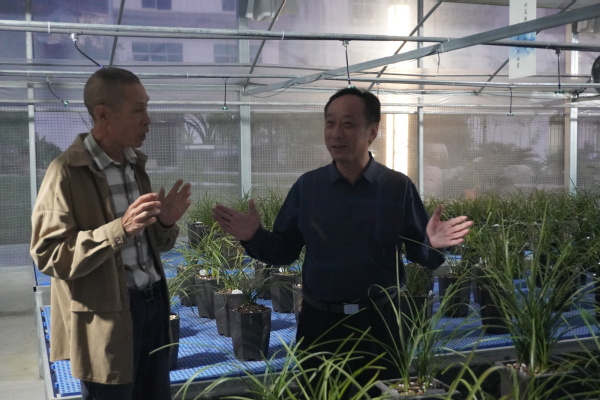 图为考察组一行考察兰花种植基地 摄影:雷雯珊