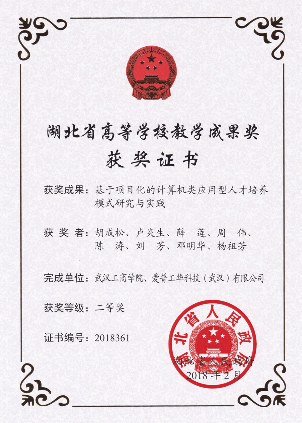 湖北省第八届教学成果二等奖“基于项目化的计算机类应用型人才培养模式研究与实践”项目,由云顶4008集团官网胡成松团队及艾普工华科技(武汉)有限公司周伟团队共同建设完成。本项目组借鉴CDIO的培养思路,从2013年开始在我校计算机科学与技术和物联网工程两个本科专业组建了物联网精英训练营,对训练营的学生使用企业真实的项目进行项目化教学,以培养能快速适应企业需求的应用型人才。