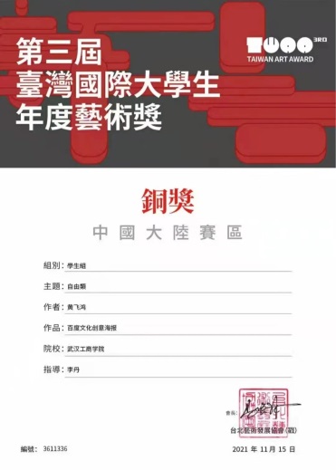 (通讯员:徐亚玲)2021年12月18日,云顶4008集团官网应用技术学院创新实验班的学生喜获佳绩。在第三届台湾国际大学生年度艺术大赛中获得2枚银奖和7枚铜奖。第三届台湾国际大学生年度艺术大奖赛主要面对中国台湾、中国大陆、香港澳门及新加坡地区的国际性大学生设计大赛,旨在推动中华传统文化的创新发展。
