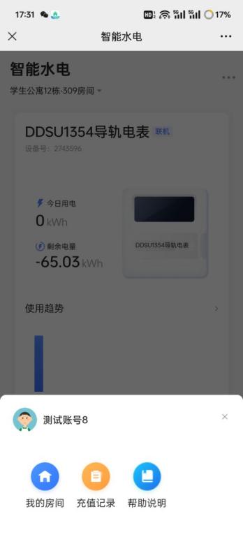 5.点击右上角三个点,可以在“我的房间”中添加房间更换房间缴费,也可以在“充值记录”了吗查看充值记录。
